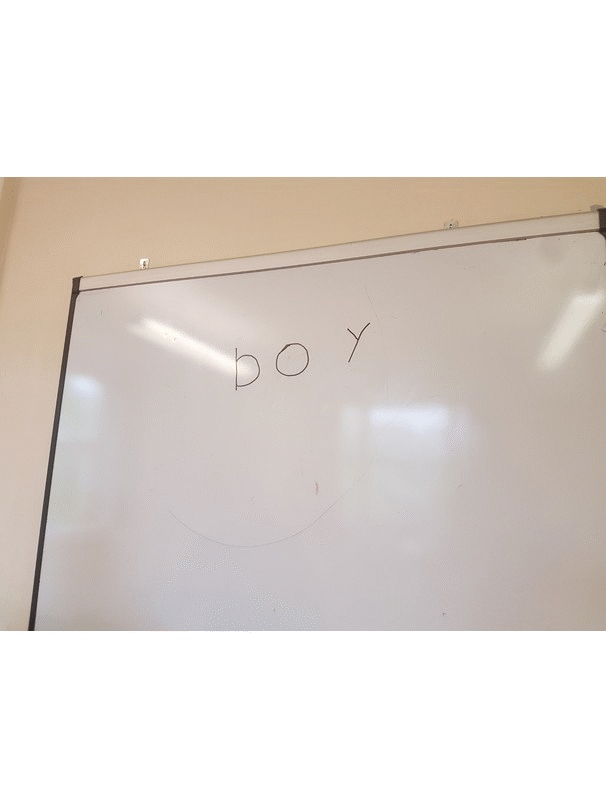 Fast-forward three years. The videoclip of Nicholas drawing a picture starting with the word “BOY” is a combination of all the skills gained; letter direction, visual prioritisation, sequencing and visual perception as well as figure ground discrimination.