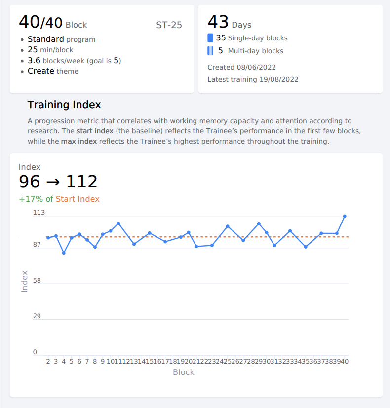 GAINS: Starting Index 96 increased to 112 = 16 points. 1Y 4M Working Memory Improvement.